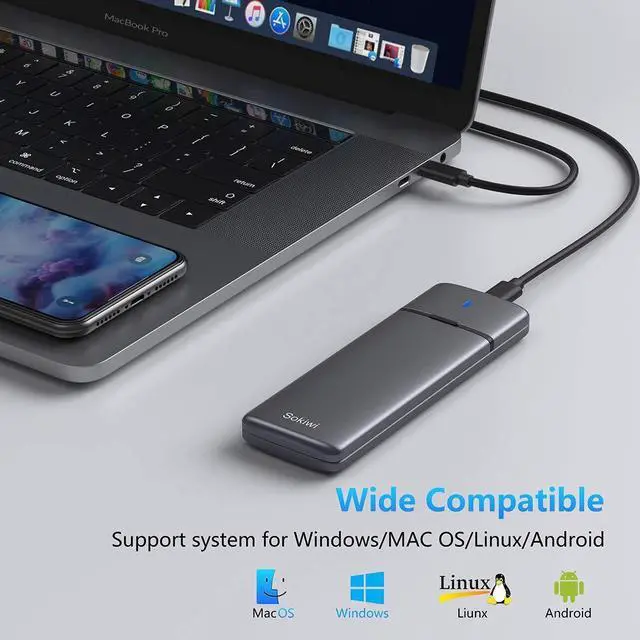 Universal Compatibility:This M.2 Enclosure supports both NVMe and SATA drives,offering versatile compatibility with SATA SSDs and M.2 NVMe SSDs(2230,2242,2260,2280).Compatible with Windows,MacOS and Linux.(Not for SSD with heat sink or mSATA)It's a perfect solution for upgrading storage or accessing data from different types of SSDs