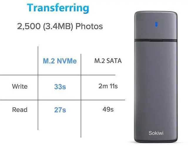 High-Speed Data Transfer:Enjoy fast data transfer rates with support for USB 3.2 Gen 2 (or higher),providing up to 10Gbps speeds.(6Gbps for SATA SSDs)Whether you're transferring large files,backing up data,this NVMe SSD enclosure ensures high-speed performance with minimal latency