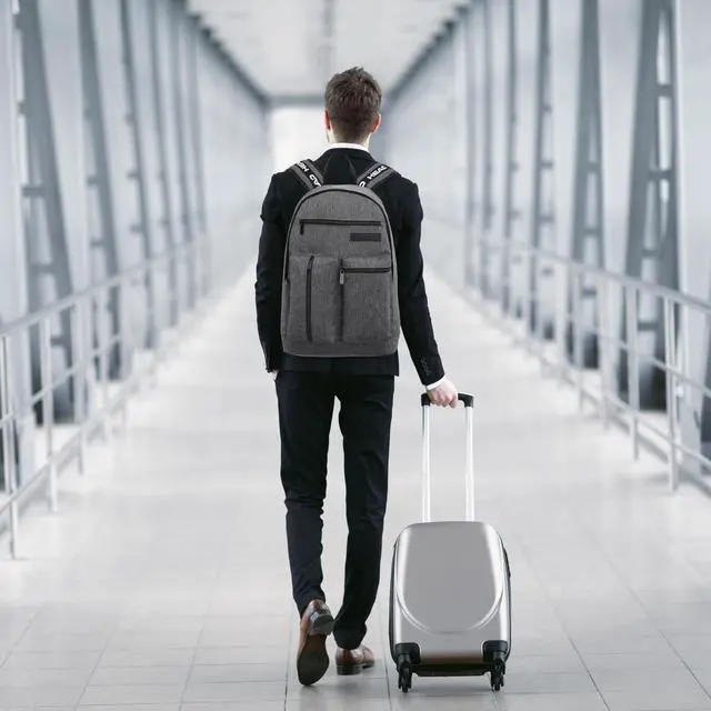 compartment (including: 1*computer compartment), 3* front pockets; The computer compartment of this 30L large laptop bag has a slight shockproof effect, which can protect the computer well. The work backpack has a total of 5 pockets, which can accommodate clothes, shoes, computers, magazines, documents, toiletries, etc., and meet the storage needs of daily necessities for 2 days of travel.
