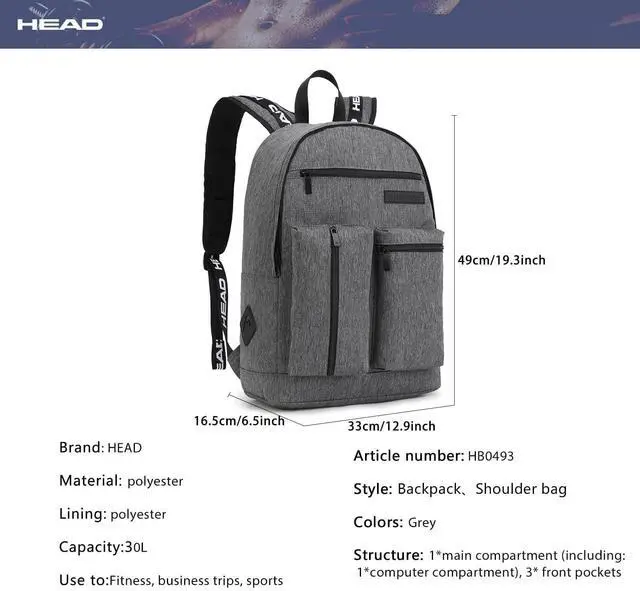 ^^ Unique Design: The travel backpack's shoulder straps are printed with a unique HEAD logo design on the front and sides, highlighting the brand's charm, low-key and eye-catching, a collision of classic and fashion. This men college backpack is an ideal choice for business, business traveling, weekend getaways, shopping, professional office work, daily travel, sports, fitness, work, training, and hiking activities, and can be perfectly matched with any clothing and occasion ^^