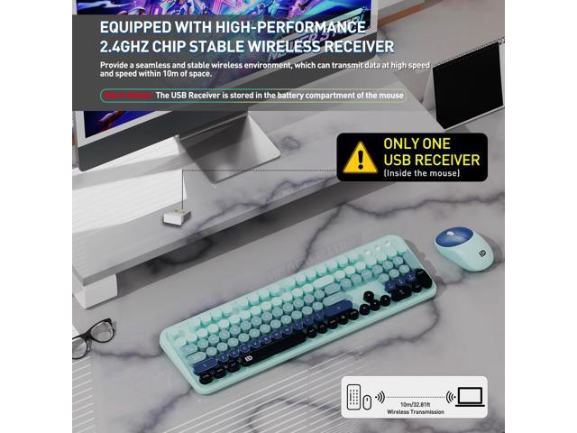 - Cute Wireless Keyboard - Stable 2.4G Wireless Connection : Enjoy a powerful wireless connection with a range of up to 10 meters (393.7 inches) for the keyboard and mouse combo. They utilize a shared Nano receiver