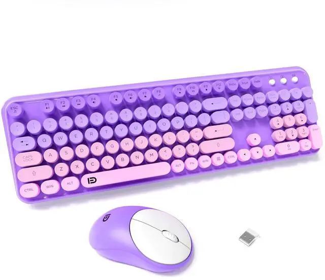 FD Wireless Keyboard and Mouse Combo - 2.4G Full-Sized Cute Colorful Mouse and Keyboard with 104 Round Keys Retro Typewriter Keyboards for Laptop/Windows/PC - Purple Gradient