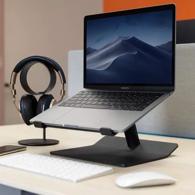 MINIMALIST FEEL Clean, sculptural lines and modern industrial elements intersect. ^^ ERGONOMIC DESIGN A neck-friendly design lets you type comfortably undisturbed by tired shoulders or poor posture. ^^ EXQUISITELY FORGED An anodized aluminum body feels more substantial in your hands and offers greater stability. ^^ UNLOCKS PRODUCTIVITY Complements your iMac, keyboard and mouse to get you in a productive state of mind. ^^ ONE SIZE FITS MOST Designed in LA, the stand is well-suited for most standard laptops with 13-16 screen sizes.