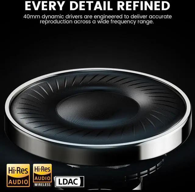 • LDAC & CERTIFIED HI-RES AUDIO1Mii Y8+ wireless ANC headphones deliver studio-grade music with Hi-Res audio and LDAC technology. The 40mm drivers deliver rich, detailed sound with a balanced performance, from deep, resonant lows to crystal-clear highs, letting you hear every note exactly as it was meant to be heard. Note: LDAC technology is only available when paired with a Bluetooth device that supports LDAC