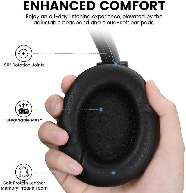 VERSATILE WIRELESS & WIRED USE: The 1Mii Y8+ Bluetooth wireless headphones are universally compatible with most devices via Bluetooth 6.0 or wired connection for worry-free listening. Whether connecting to smartphones, tablets, laptops, or computers, the noise canceling headphones can always adapt to your needs ^^ ALL FOR COMFORT & PORTABILITYThe plush memory foam cushions cradle your ears in pressure-free softness, and the adjustable headband guarantees a personalized fit. The sleek, foldable design makes the Bluetooth headphones effortlessly portable perfect for daily commutes and plane trips ^^ CUSTOM EQ VIA APPTune your wireless headphones sound with 22 preset sound effects (Deep Bass, Classic, Pop, Rock, Jazz, Country) or personalize your audio with custom EQ settings in the app to match your music preferences. Monitor battery level, toggle ANC/Transparency Mode, and explore soothing sleep sounds for an elevated listening experience
