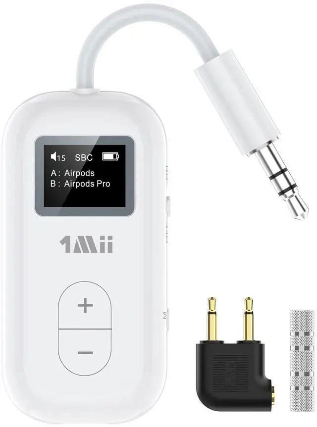 You can easily connect non Bluetooth devices such as airplanes, televisions, and computers to your wireless earphones or headphones. In addition, the 3.5 mm auxiliary audio jack can also help you easily connect the adapter to various audio devices (Compatible with MP3 players, TVs, switches, PS4/5 controllers, projectors, etc). It is easy to use and very simple. ^^ Dual Connection and Low Latency The 1Mii SafeFly Dual Bluetooth transmitter can be connected to two headphones or Bluetooth earphones to enjoy together. It also supports aptX HD and aptX Low Latency (aptX LL), allowing you to enjoy clear and low latency audio when paired with devices that support aptX LL.