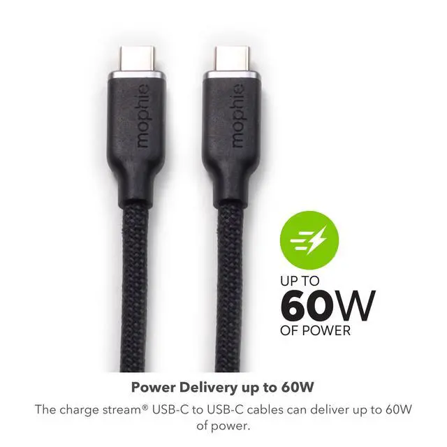 Discover a fusion of durability, flexibility, and performance with the Mophie charge stream USB-C to USB-C cable. Crafted for daily rigor, its heavy-duty braided construction can outlast 30, 000 bends, setting new industry benchmarks. At its core, the proprietary Enduraflex silicone ensures the cable remains kink-free, offering a tactile feel that is as premium as its design. With 60W Power Delivery, charging becomes not just swift, but also efficient, while the fortified attachment points showcase Mophie's commitment to quality and longevity. Recognizing the needs of the contemporary user, we've added a thoughtfully designed cable strap, ensuring that whether at home, office, or on an adventure, your cable remains tangle-free and ready for action.