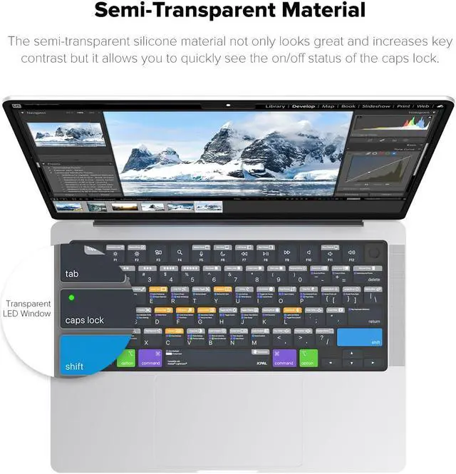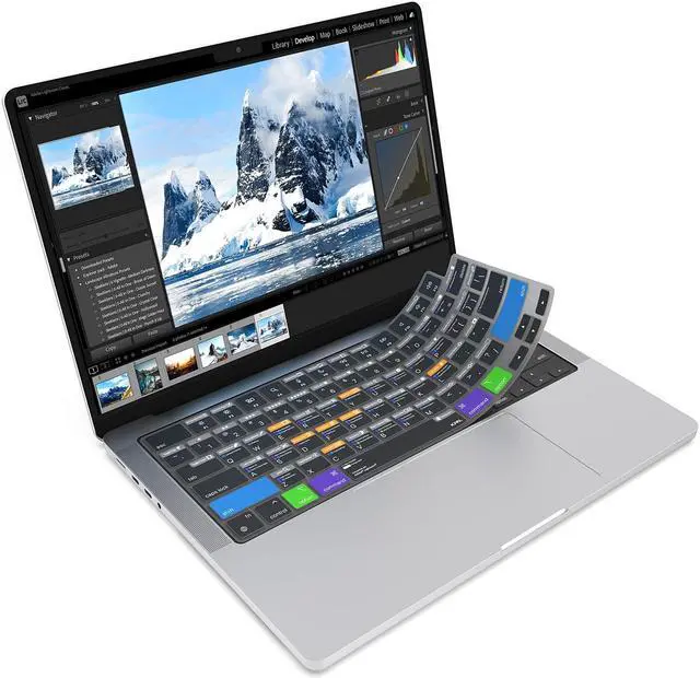 JCPal Adobe Lightroom Shortcut Guide Keyboard Cover for Apple MacBook Pro 14 inch (M1-M5) and MacBook Pro 16 inch (M1-M4) and MacBook Air 13 inch and MacBook Air 15 inch (M2-M4) (US-Layout)