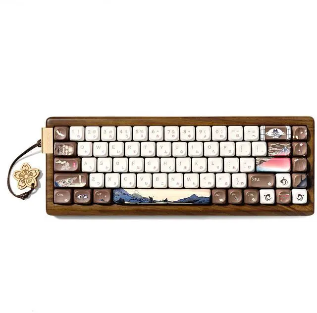 SOLID WOOD SHELL WITH UNIQUE FUJIWAVE AESTHETICS The XVX MU68 FujiWave mechanical keyboard features a sleek, polished solid wood shell that brings a touch of natural elegance to your desk setup. Complementing the premium wood case are the MOA profile PBT keycaps and exclusive details like the leather cherry blossom pendant and anodized aluminum alloy trim, which elevate the keyboard's visual appeal and sense of craftsmanship. It's not just a typing tool, but a statement piece for any workspac ^^ TRIPLE MODE CONNECTIVITY & LONG-LASTING BATTERY Designed for multi-device users, this keyboard supports seamless switching between 2.4GH z wireless, Bluetooth, and USB-C wired modes, ensuring stable and reliable connectivity for every scenariowhether you're gaming, working, or browsing.
