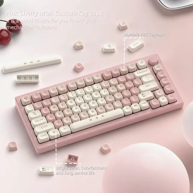 Pink Cute MOA KeycapsThe upgraded style of the MOA keycaps is more beautiful and cute than the XDA keycaps, with more rounded edge lines, stronger curvature and higher typing comfort, let people refreshing. The keycap adopts advanced dye sublimation technology, the color pattern is more vivid, not afraid of oil stains, and has a long service life. ^^ Dye Sublimation PBT Keycaps This keycap is made of high quality PBT key material, with matte texture and wear resistance. Keycaps with thickness will make users feel more texture. The pattern on the keycap adopts dye sublimation technology, and the pattern will never fade.