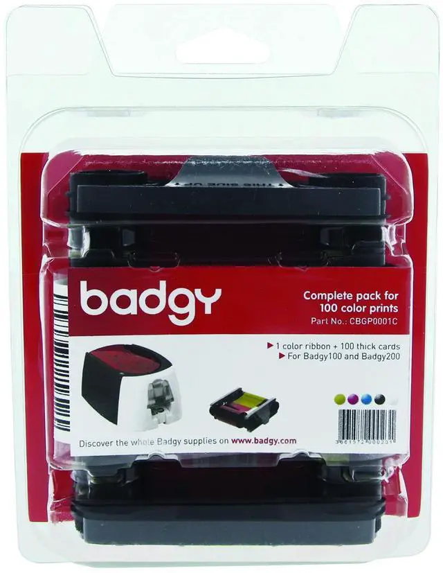Badgy Color Ribbon and Cards Kit for 100 Prints - Badgy100 and Badgy200 Compatible