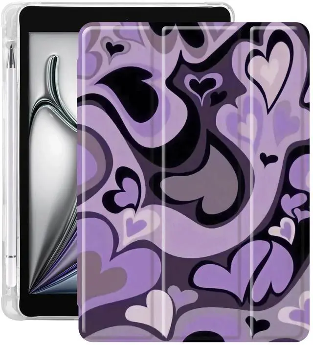 Idocolors Cute Heart Pad Case for 10.2 Inch iPad 9th/7th/8th Generation, Clear TPU Triple Adjustable Stand Back Cover with Pencil Holder, Auto Wake/Sleep Anti-Scratch iPad 2021/2020/2019 Case