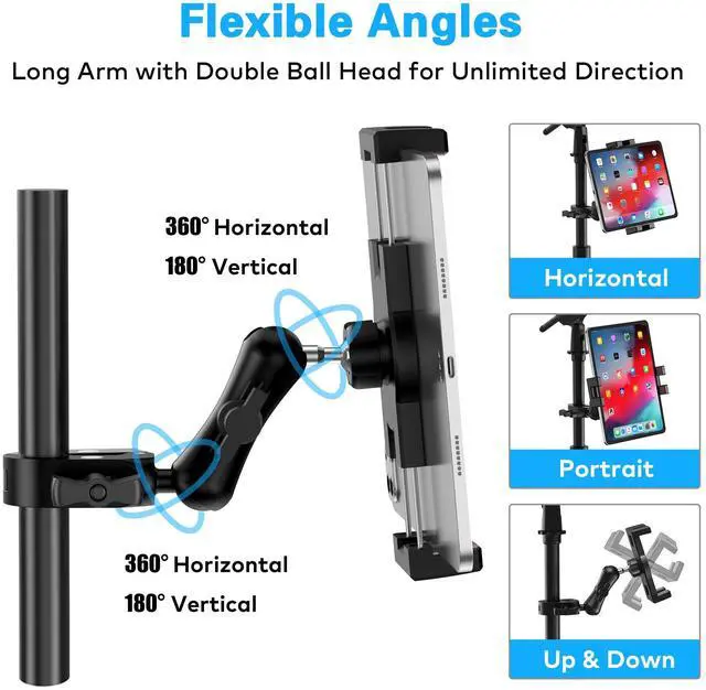 Sturdy Tablet Holder for Mic Stand: Our iPad clamp mount features a robust aluminum arm and metal base, ensuring unparalleled stability and durability. Ideal for attaching to any mic stand, this holder keeps your device safe and secure, whether you're reading music sheets or managing sound controls.