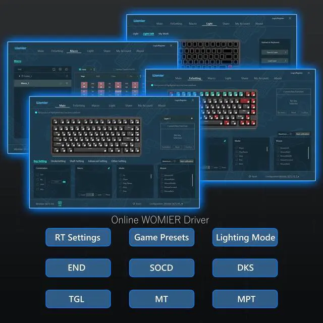 Aluminum Hall Effec Keyboard 75% Percent with Magnetic SwitchesExperience the perfect blend of mechanical performance and magnetic precision with the WOMIER SK75 HE. Wireless keyboard mode, allowing you to move freely. Its popular 75% layout and magnetic sensors allow for fully customizable actuation, giving you full control over every keystroke.Computer keyboard is suitable for PC, laptops, tablets, mobile phones, PS, XBOX etc.