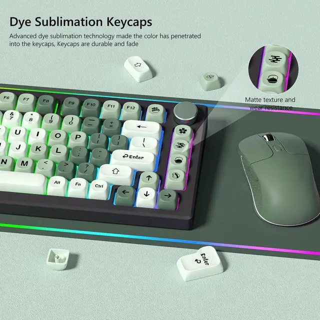Gradient MOA KeycapsThe popular gradient keycap color matching with MOA keycap is refreshing. Enrich and supplement the keycap, so that the DIY keyboard keycap is more handy. The key cover adopts advanced dye sublimation technology, which has higher adaptability to Japanese key cap characters, is not afraid of oil stains and has long service life. ^^ PBT Keycaps SetThe upgraded MOA profile keycap is more beautiful than XDA keycap. Ergonomic comfort allows you to use stress-free Arc layout, concave arc, the area where fingers touch the keycap is larger, and the touch is more silky.