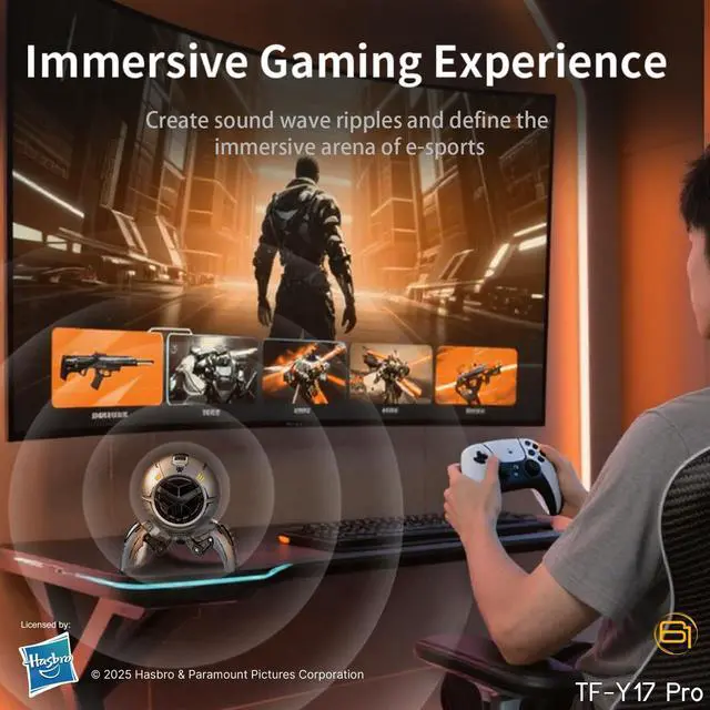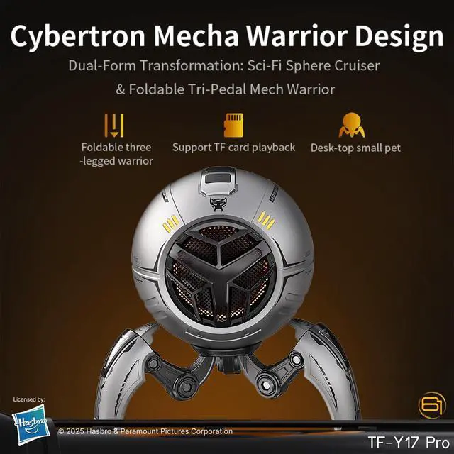 Its dual-form mecha design shifts between a sleek Cybertron-inspired sphere cruiser and a foldable tri-pedal warrior stand, giving it both stability and display-worthy aesthetics. With RGB lighting, TF card playback, hands-free calls, and a long-lasting 2, 000mAh battery, this speaker is engineered for all-day performance. Compact, portable, and visually striking, the TF-Y17Pro redefines what a desktop speaker can bea mini companion, a gaming prop, and a premium lifestyle collectible, all in one.