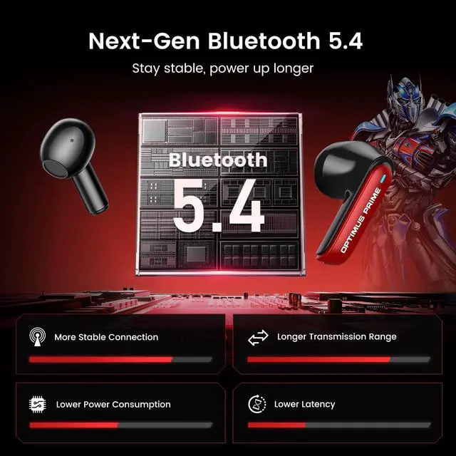 Official Transformers Collectible: Featuring Optimus Prime design, these are true Bluetooth Wireless Earbuds built for fans and collectors. Engineered with Bluetooth Earbuds Noise Cancelling technology, they let you immerse in lossless sound with deep bass, balanced mids, and clear highsperfect for gaming, music, and calls. The Wireless Earbuds Bluetooth 5.4 ensures instant pairing, ultralow latency, and rocksolid connectivity whether youre on iPhone, Android, or PC.