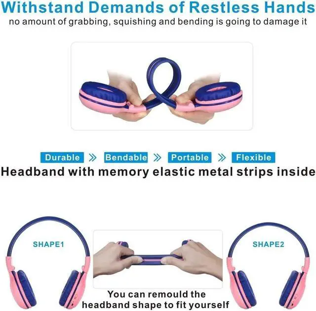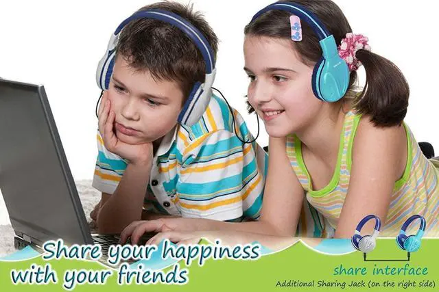 3 selectable Limited Volume Levels protecting your kids hearing-75dB for toddlers, 85dB for kids, 94dB for adults. Adjustable and foldable design-Adjustable headband and extra nylon fastening straps make sure the headphones fit for growing kids even adults; Compact and fold up very small. Perfect for Travel. Share your Happiness-Designed with an additional sharing jack on the right side of the headphones, kids can have another headphone plug into it to share audio with his friends at school/home, travelling or flying. Ideal birthday / Christmas Holiday gifts for your lovely kids-charming color and high quality sound, best gift choice for your toddler, children.