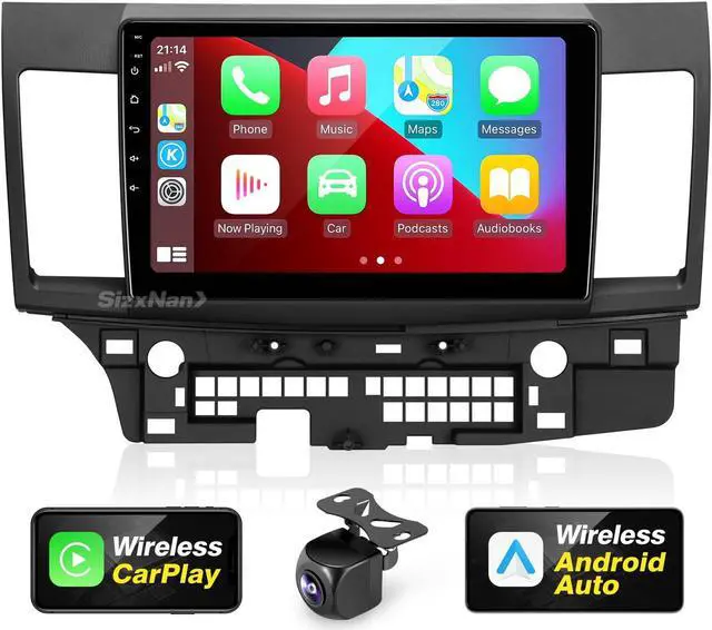 SizxNanv for Android 11 Compatible with Wirelessly Carplay Android Auto, Car Radio Stereo Bluetooth Navigation GPS WiFi FM/AM 8 core 4GB+64GB 1280X720 Touchscreen Backup Camera for Lancer 2008-2017