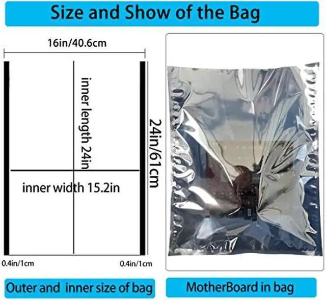 *ITEM:10pcs 16x24in/40.6x61cm Antistatic bags Extra large size for packaging large size electronic components, big enough size to fit more electronic devices,and gift for 10pcs antistatic labels,this is the largest size bag sold on