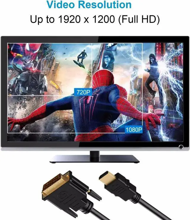 [(Full HD Video)] The DVI HDMI monitor cable supports video resolution at 1920x1200, 1600x1200,1280x1024,1024x768,800x600 and 1080P.Connect and configure your monitor for an Extended Desktop or Mirrored Displays.
