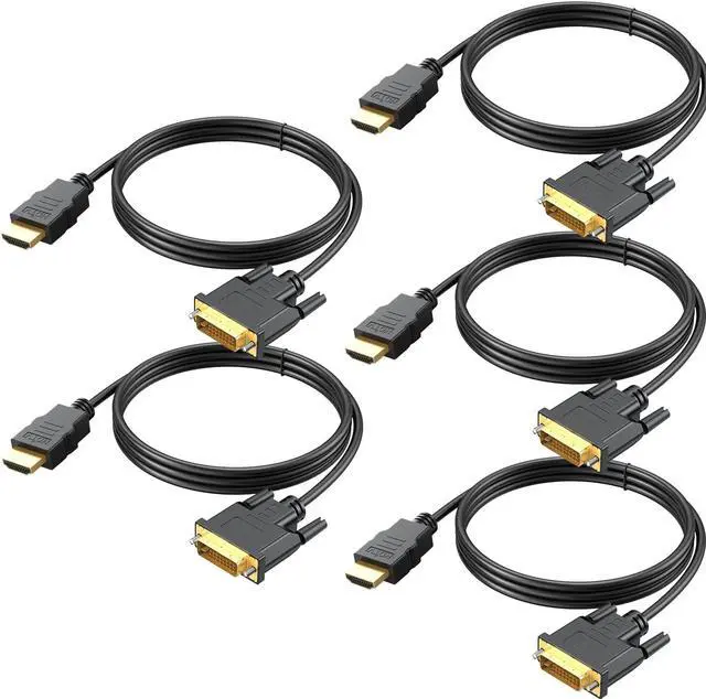 HDMI to DVI Cable 5-Pack, 6.6 Ft Bidirectional DVI-D to HDMI Male to Male High Speed Adapter Cable Support 1080P Full HD (5, Black)