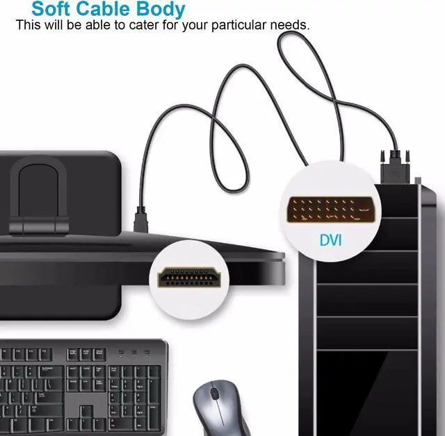 [(Solid Fall Protection)] This hdmi-dvi made with gold-plated connectors,three layer shielded wire and molded strain relief for durability,protect against EMI and RFI noise for static-free video transmission.