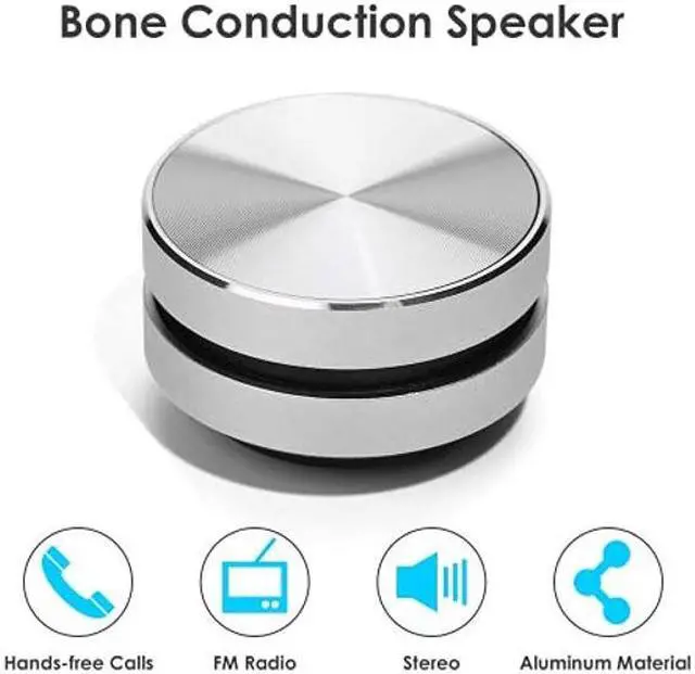 Different Surfaces Different Sounds This mini speaker uses bone conduction technology to give you a DIY customization sound experience. You can test and enjoy different sounds - almost as if different instruments are being used. Place it on different surfaces such as guitar, Kraft box, plastic storage box, photo frames, sports headphones or even dashboards can provide you various sound effects.
