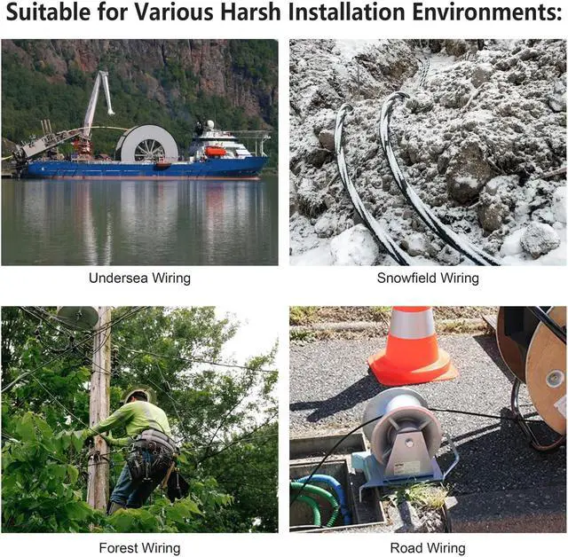 Industrial OM4 Outdoor Fiber Optic Cable with TPU Jacket: TPU outer jacket features strong tensile strength, high abrasion resistance, water proof, high and low-temperature resistance, uv-resistant, bending resistant.