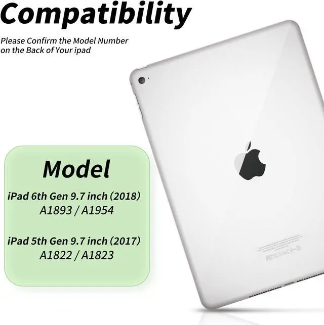 Compatibility iPad 9.7 inch Case with Keyboard iPad keyboard case is designed for iPad 6th Gen 2018 9.7 inchModel:A1822/A1823, iPad 5th Gen 9.7 inch 2017(Model: A1893/A1954). It is Not compatible with any other devices. Please check back bottom of your iPad to find the model number.