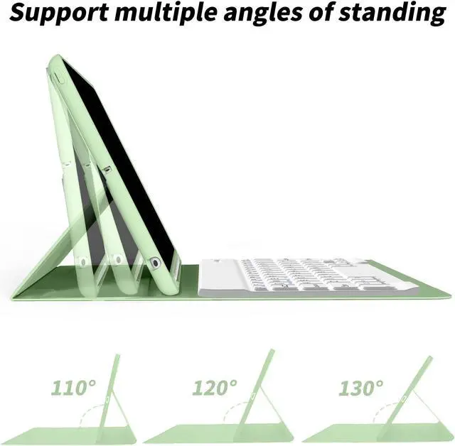 aoub Keyboard Case for iPad 6th Generation 2018/5th Gen 2017 9.7 Inch, iPad Air 2, iPad Air, Detachable Wireless Bluetooth Keyboard, Stand Folio Cover with Pencil Holder, Auto Sleep/Wake, Light Green