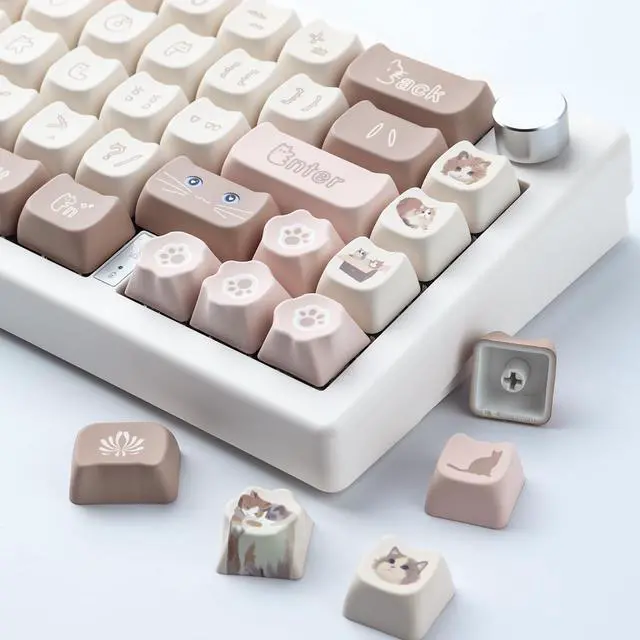 Cat Shape KeycapsThe uniquely designed cat-shaped keycaps are designed based on the latest MOA Profile, The keycaps have unique cat ears and or cat paws, which are beautiful and cute and provide high typing comfort, which is twice as cute, while taking into account excellent touch and typing feel