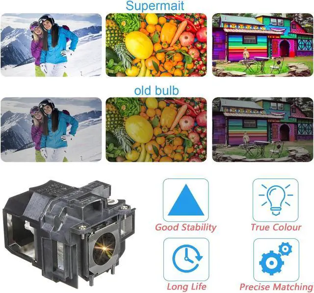 Supermait for EPSON ELPLP78 / V13h010L78 Replacement lamp, Fit for EPSON EX7230 EX5220 EX7235 VS230 EX7220 EX3220 EX5230 VS335W EX6220 VS330 EB-S18 /PowerLite Home Cinema 2030 2000 1222 X17 S18+