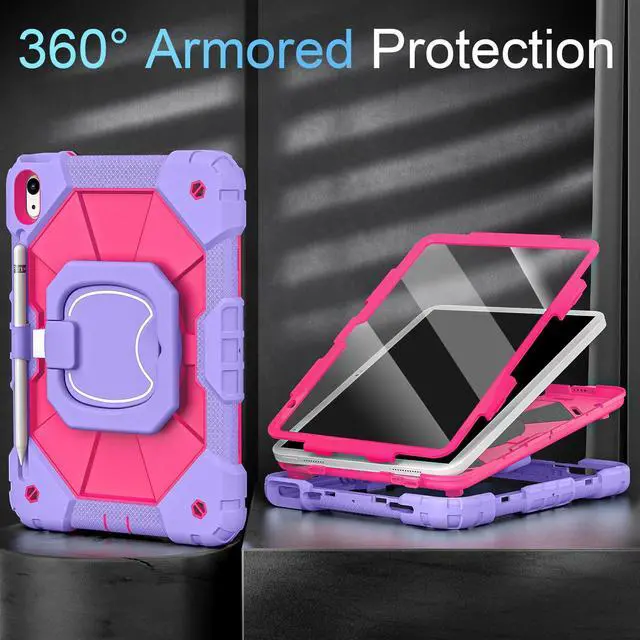 Auizotl Case for iPad (A16) 11th Gen 11 Inch (2025) /iPad 10th Gen 10.9 Inch (2022) with Screen Protector/Rotating Stand/Pencil Holder, Military Grade Shockproof i Pad Case 10th Generation, Purple Pink