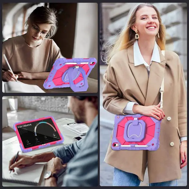 360 ROTATING STAND PENCIL HOLDER iPad case 10th generation with a rotating handle that also folds 180° to give you multiple angles between 25-85 degrees of horizontal or vertical orientation,iPad 10.9 case with pencil holder.Also offers hand hold and hung on wall using by handle function,allow you use or carry much easier,perfect for a variety of people and occasions.
