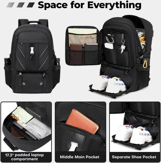 Banlole 17.3 Inch Travel Laptop Backpack with Shoe Compartment,50L Carry on Flight Approved Backpacks Multiple Compartments,Water Resistant Anti Theft Bag with USB Charging Port,for Men Women