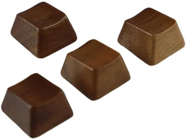 The keycap is made of CNC walnut wood. The back stem is resin which is more stable than wood