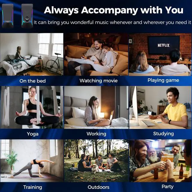 Super Sound Quality - Unique subwoofer technology and the latest material are adopted and excellent in high-performance precision drive and 360 surround sound design. The sound quality is high and it is a gem that excels in the low range. 2.0 Channel stereo speakers, enjoy the best stereo effect!