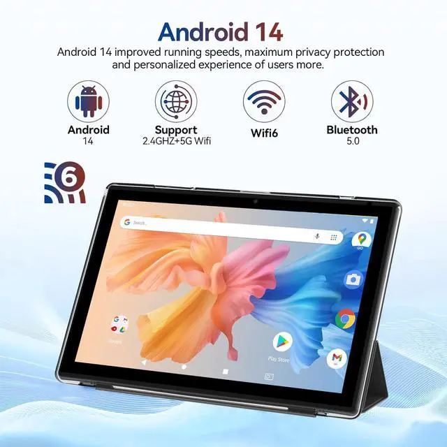 Android 14.0 Tablet Latest Android 14.0. Quad-core processor, (2+6)GB+64GB/1TB ROM plenty of room to store videos, music, games and more file. Load multiple programs while ensuring the system runs fast.