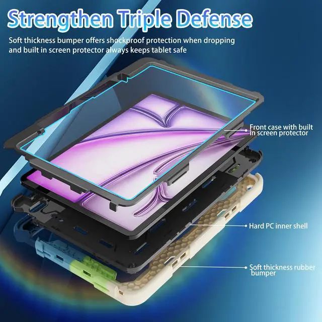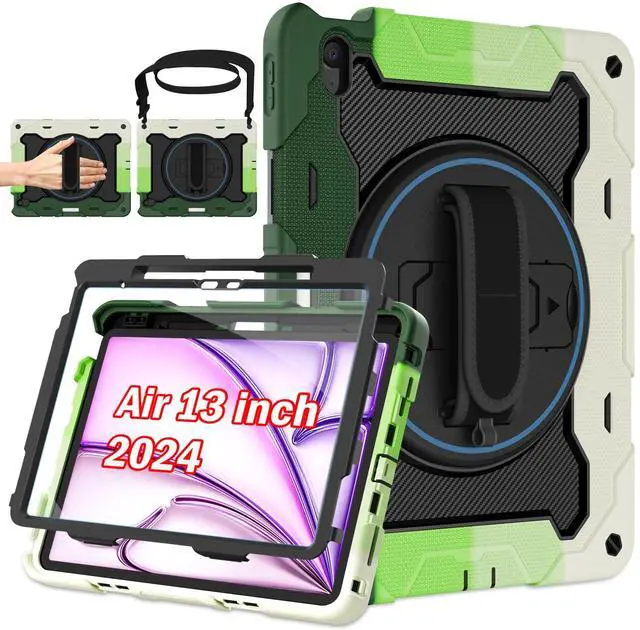 ROSROME for iPad Air 13 Inch Case M3 2025 / M2 2024 with HD Screen Protector, Shoulder Strap, 360 Stand, Hand Strap, Pen Holder [ Kids Friendly] Heavy Duty Shockproof Drop Protection