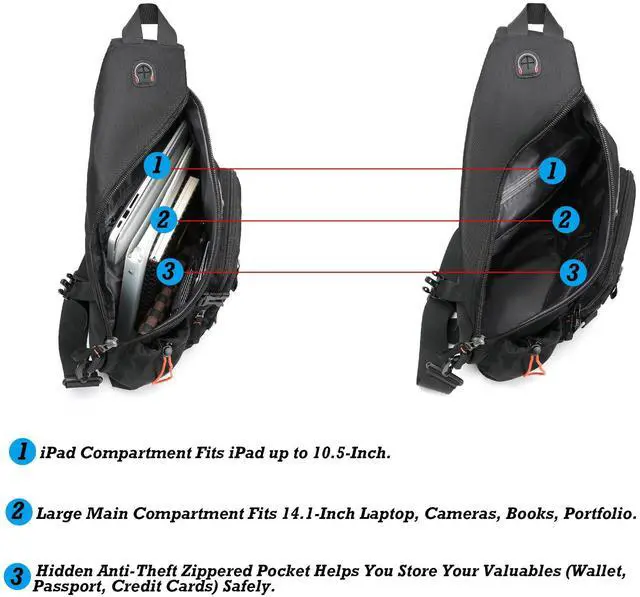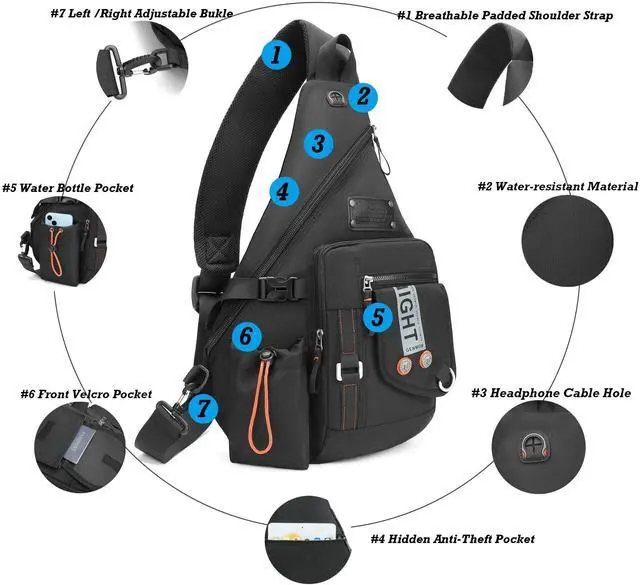 Material: The messenger sling bag is made of water-resistant nylon material, smooth zippers, and an inner lining to make this sling backpack good-looking and useful.