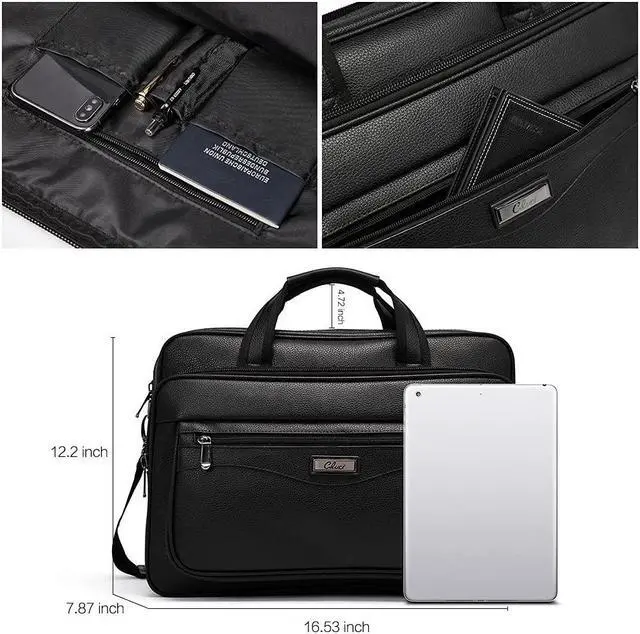CLUCI Leather Briefcase for Men Large Capacity 15.6 Inch Laptop Business Expandable Messenger Bags Travel Case
