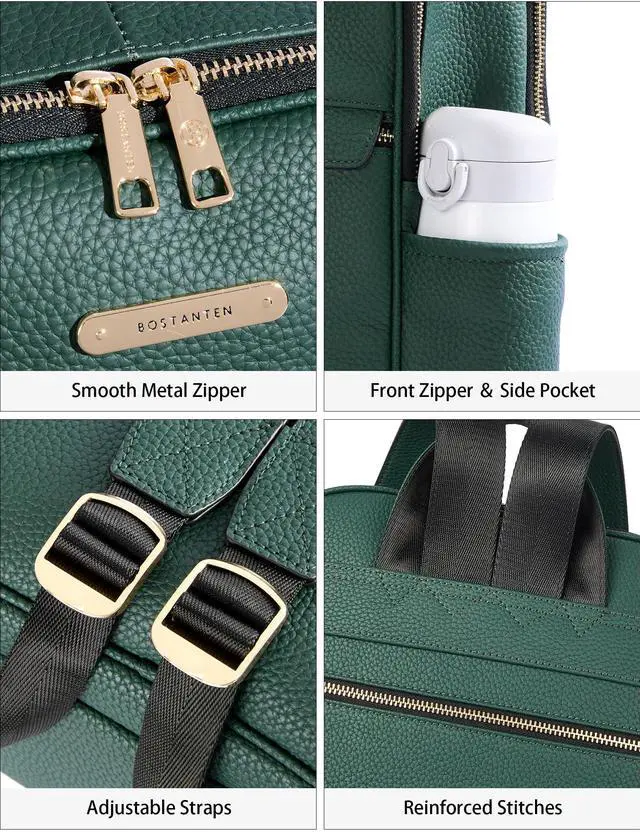 BOSTANTEN Genuine Leather 15.6 inch Laptop Backpack Purse for Women College Casual Backpack Travel Bag Daypack Green