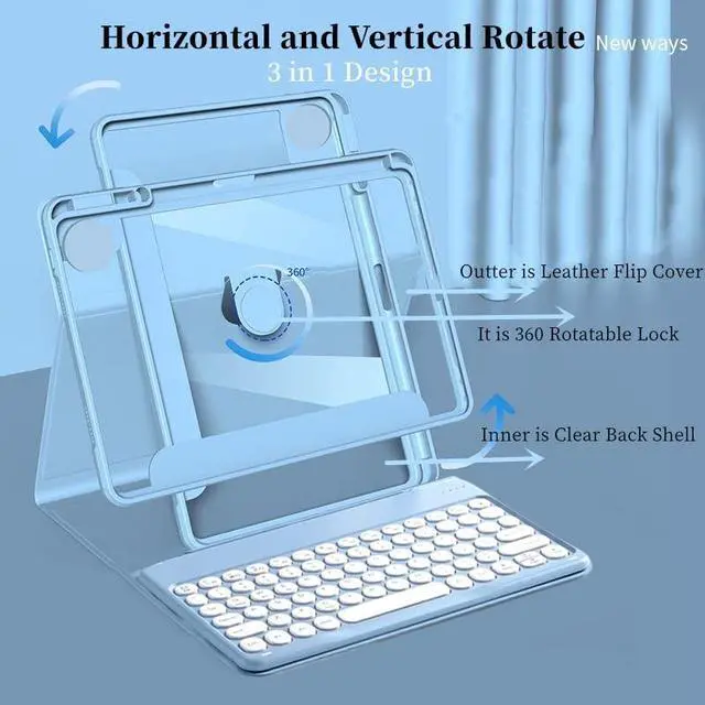 New Rotating Designthis cute keyboard can offer horizontal and Vertical Angels. Easily adjusts to whatever comfortable angle suits you best. You can display your work presentation, watch your favorite show or read a new book. Its also a great helper for your kids to do their homework