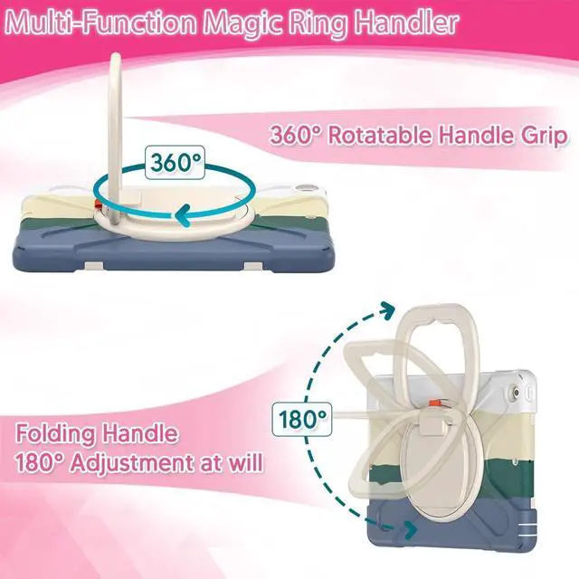 Hands-Free Viewing Stand Ideal for travel, home, school, and work use our tablet protector features a 360° rotating handle that also folds 180° to give you multiple viewing angles. Great for enjoying movies, playing games, and real-time video chats.