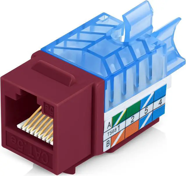 Slim Profile Design - Can be used with a patch panel, wall plate, or surface mount box with standard or slim keystone blank openings. Cat 5e keystone jack accepts 23 and 24 AWG unShielded twisted pair (UTP) cable. compatible with Leviton QuickPort System and slim Cat6 Decora style wall plates