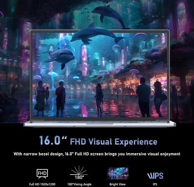 3. 16 FHD IPS Display: Immersive Gaming Computer The 16 FHD IPS screen (1920x1200, 32-bit color) delivers crisp visuals perfect for gaming laptops. Paired with a built-in HD webcam, its ready for streaming battles or video callsno compromises on clarity or detail.
