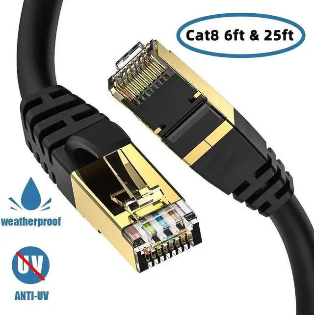 Heavy duty & Direct burial: the Quadruple shielded Cat8 Ethernet cable is super efficient in reducing EMI/RFI interference and provide highest fidelity for long distance data transmission. With upgraded PVC, Cat8 is waterproofed & anti-corrosion and more durable & flexible for heavy duty work. Can be buried directly under the ground; suitable for both outdoor and indoor use