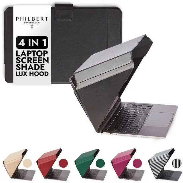 Philbert Danish Design 4-in-1 Laptop Sun Shade Lux Hood - Screen Shade, Privacy Screen, Heat Protection, Contrast Enhancement - Fits 15"-16 Laptops, Self-Standing Cover with Pocket - Black