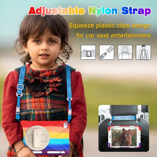 BRAECN for iPad mini 5 Case, iPad mini 5th Generation Case, Protective Shockproof Rugged Kids Case with Pencil Holder, Hand Strap, Shoulder Strap, Kickstand for Apple iPad mini 5/4 -Rainbow